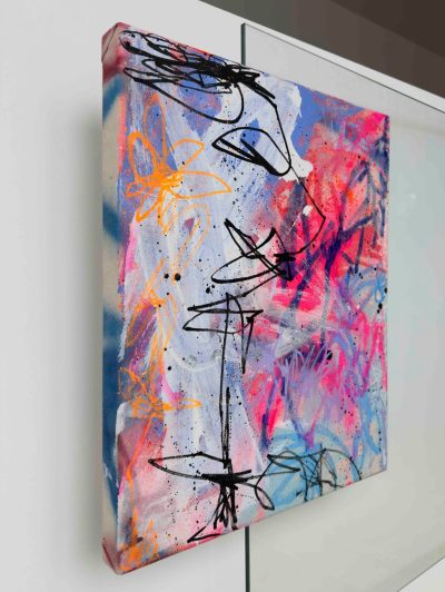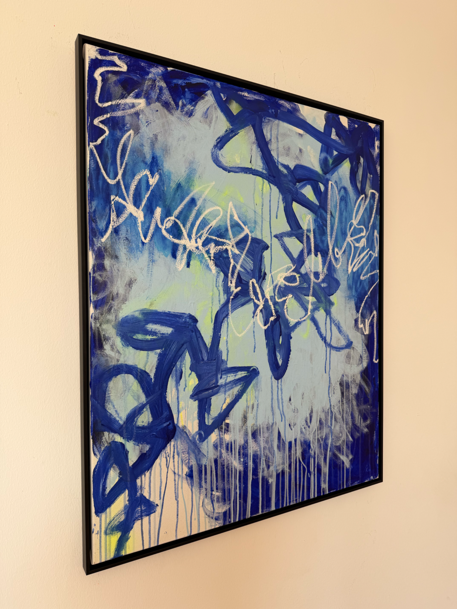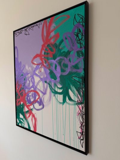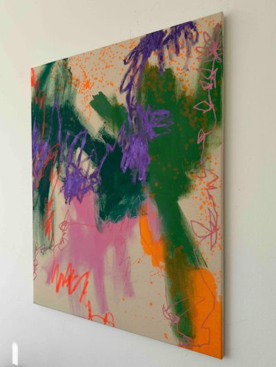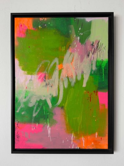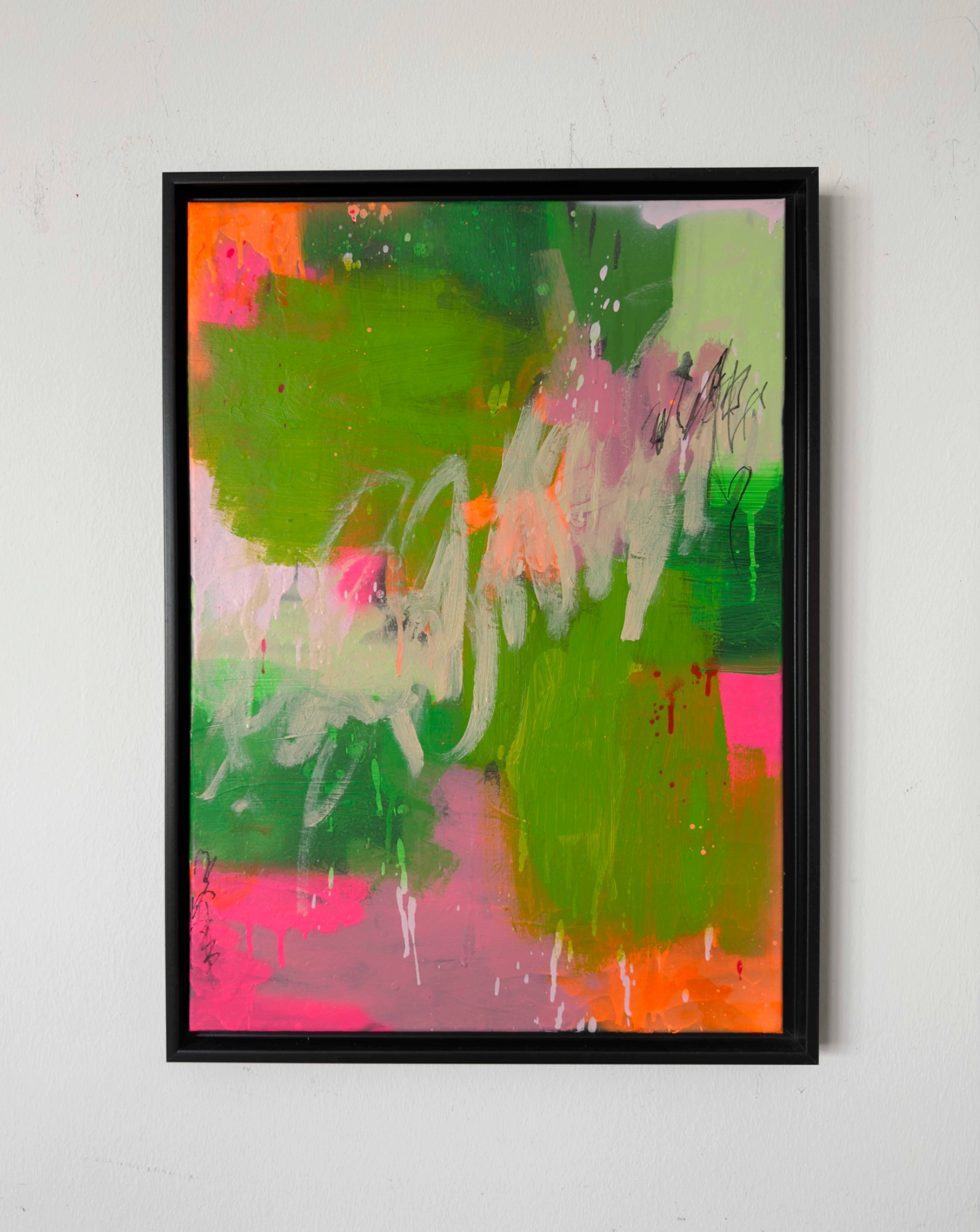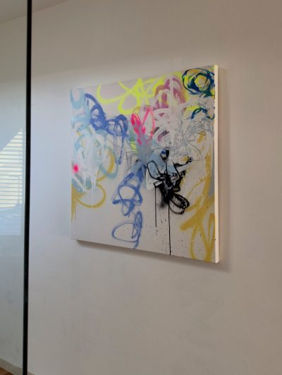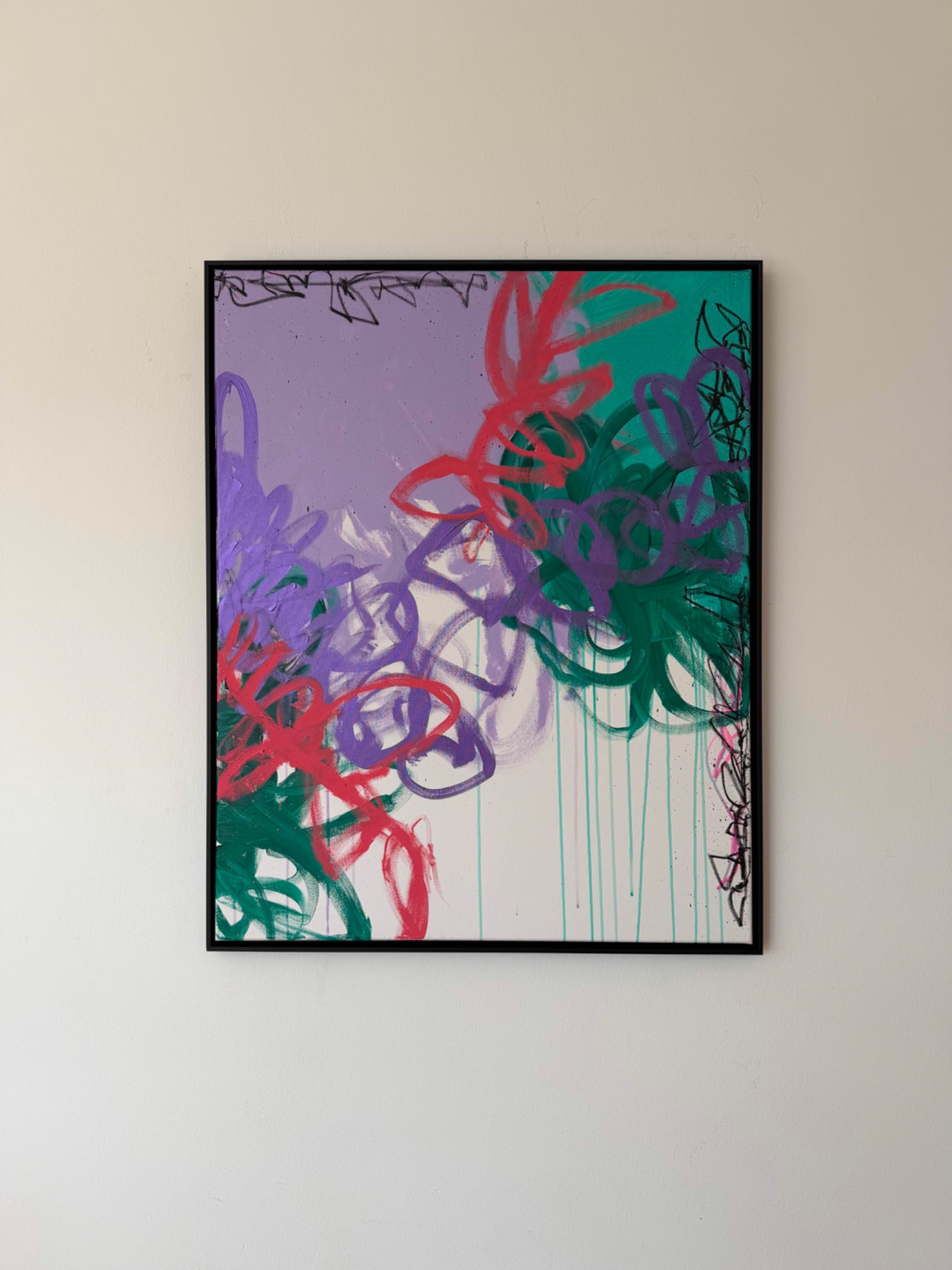 Weiße Schlieren ziehen sich wie Wolken durch das Werk. Wie Dunst über einer Stadt, die nie ganz schläft. Urbane Nacht, Street Vibes, Spuren von Energie. Und mittendrin etwas, das sich entscheidet zu wachsen.