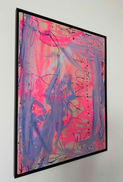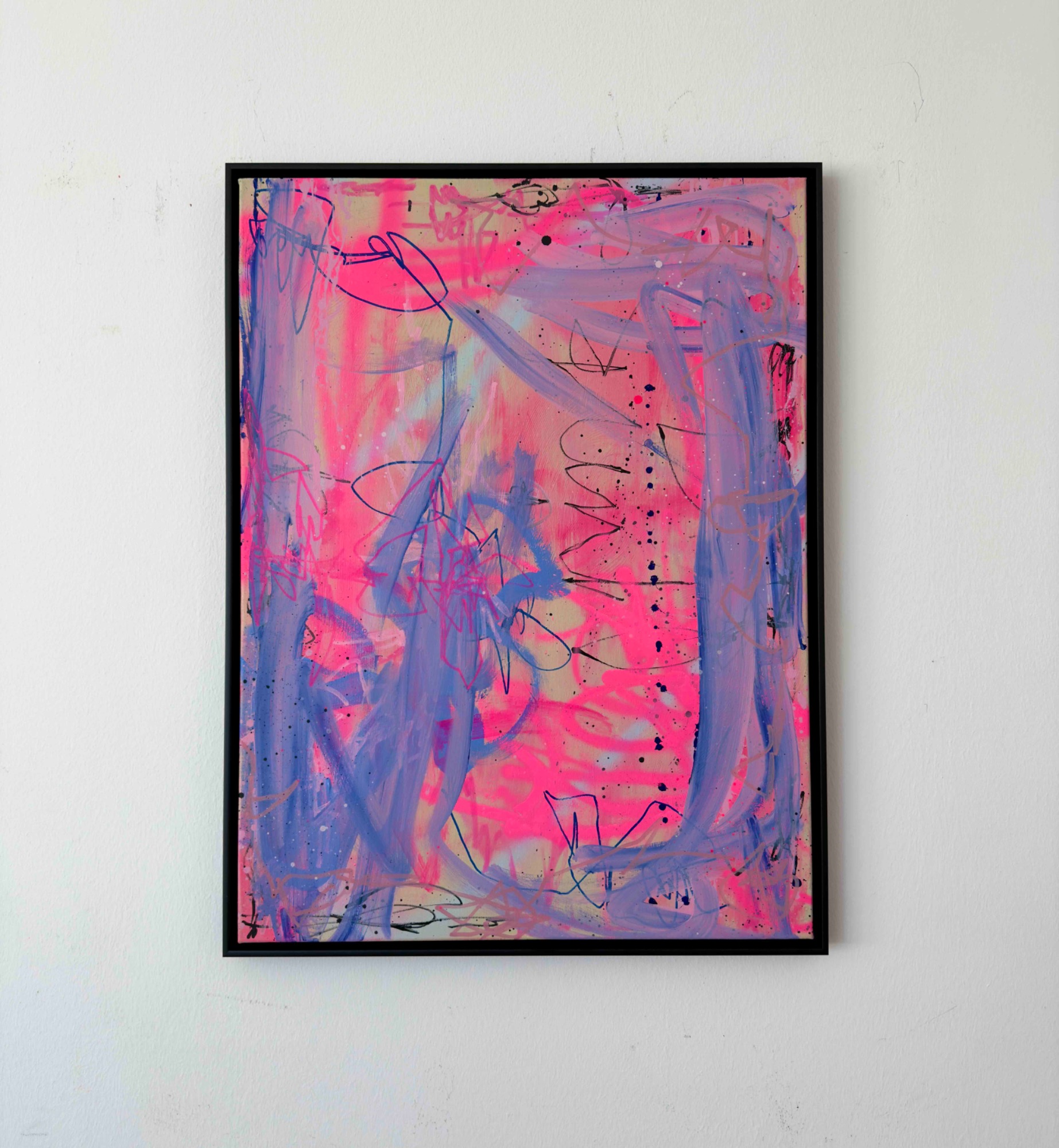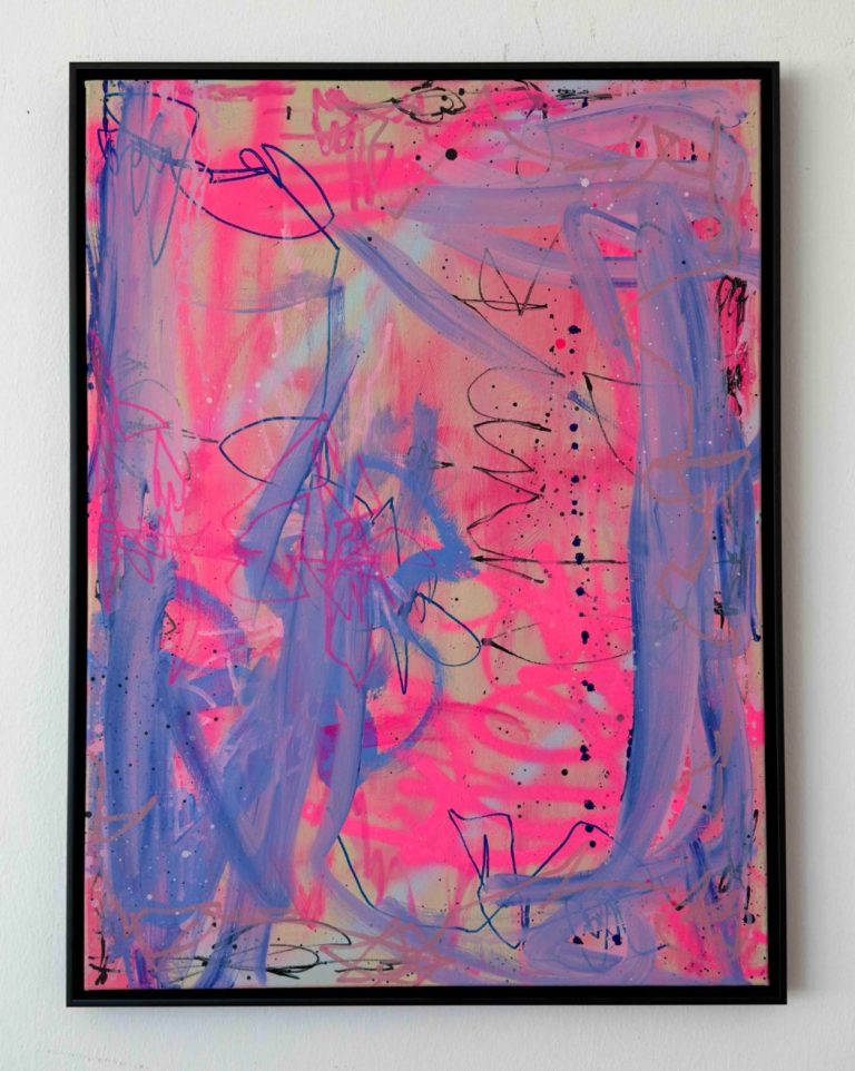 Zwischen Pink, Blau und dunklen Linien entsteht eine Bewegung.