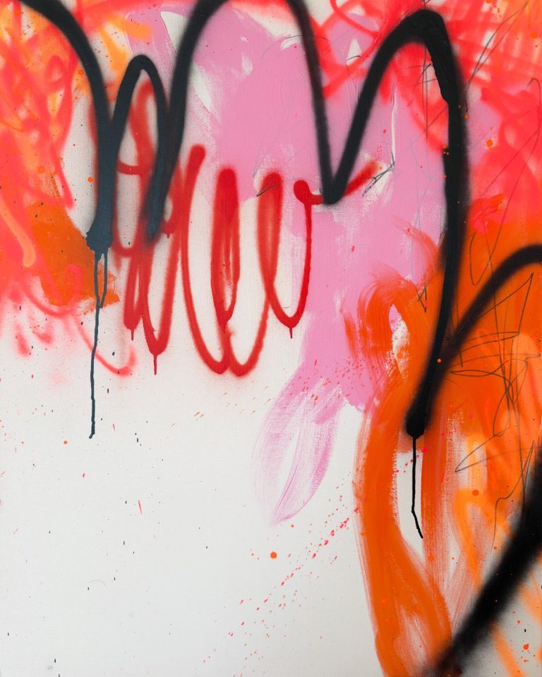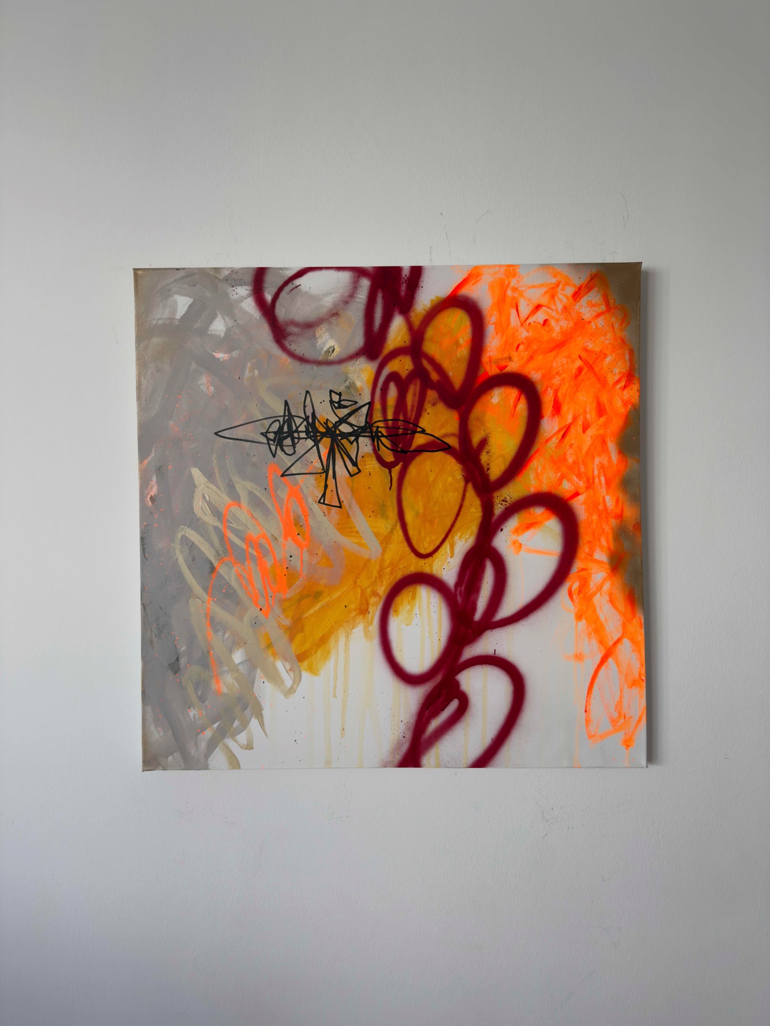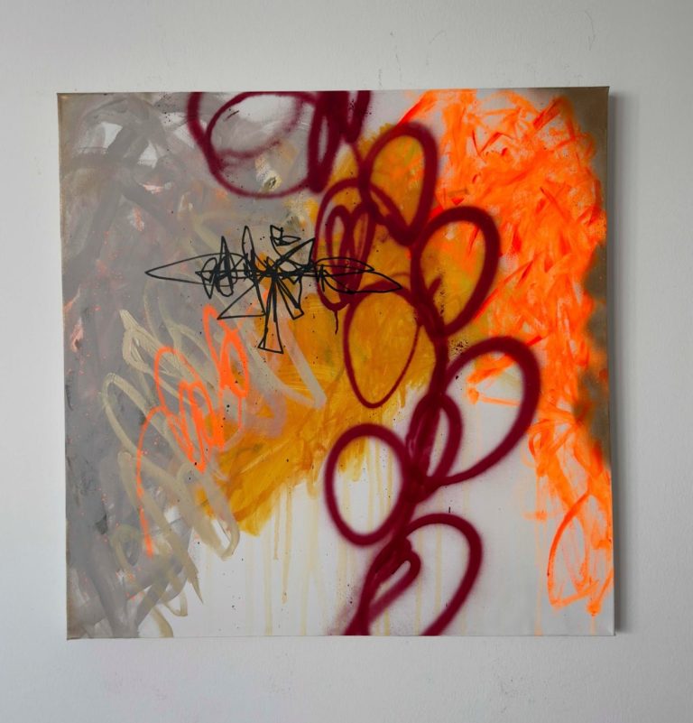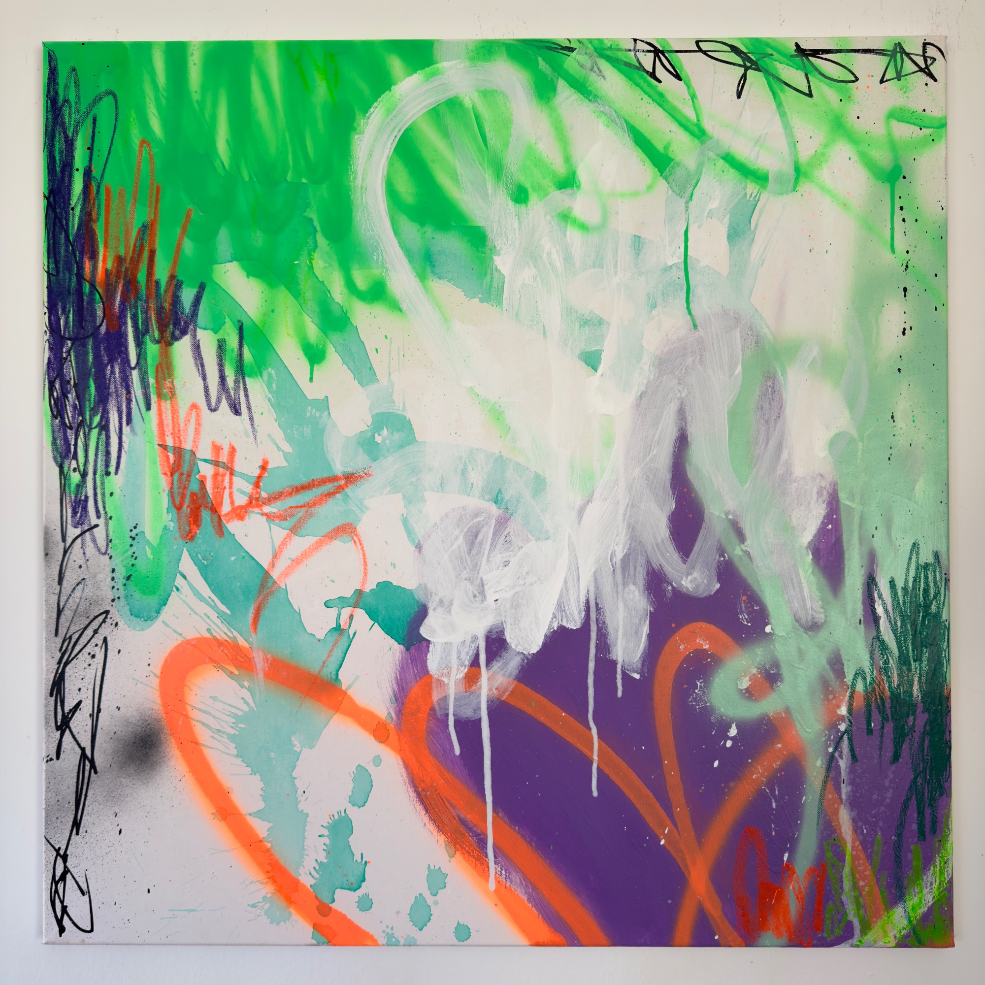 Acryl, Lackmarker, Ölkreide & Spray auf Leinwand