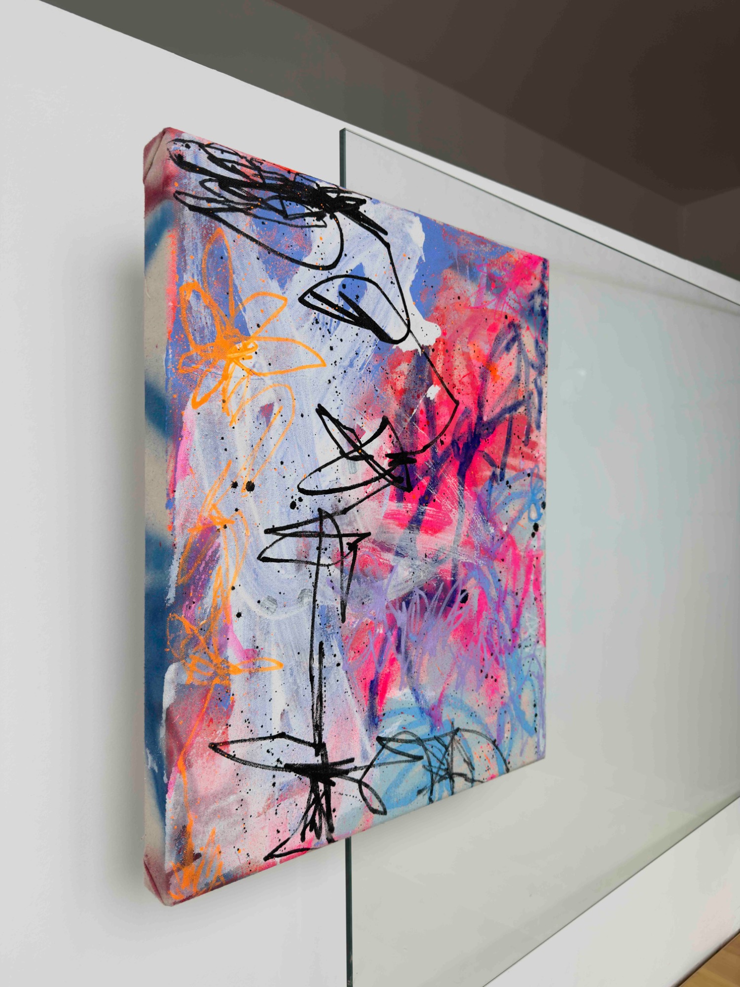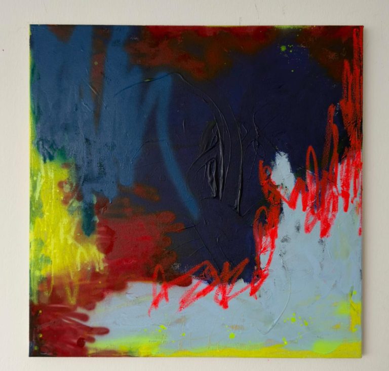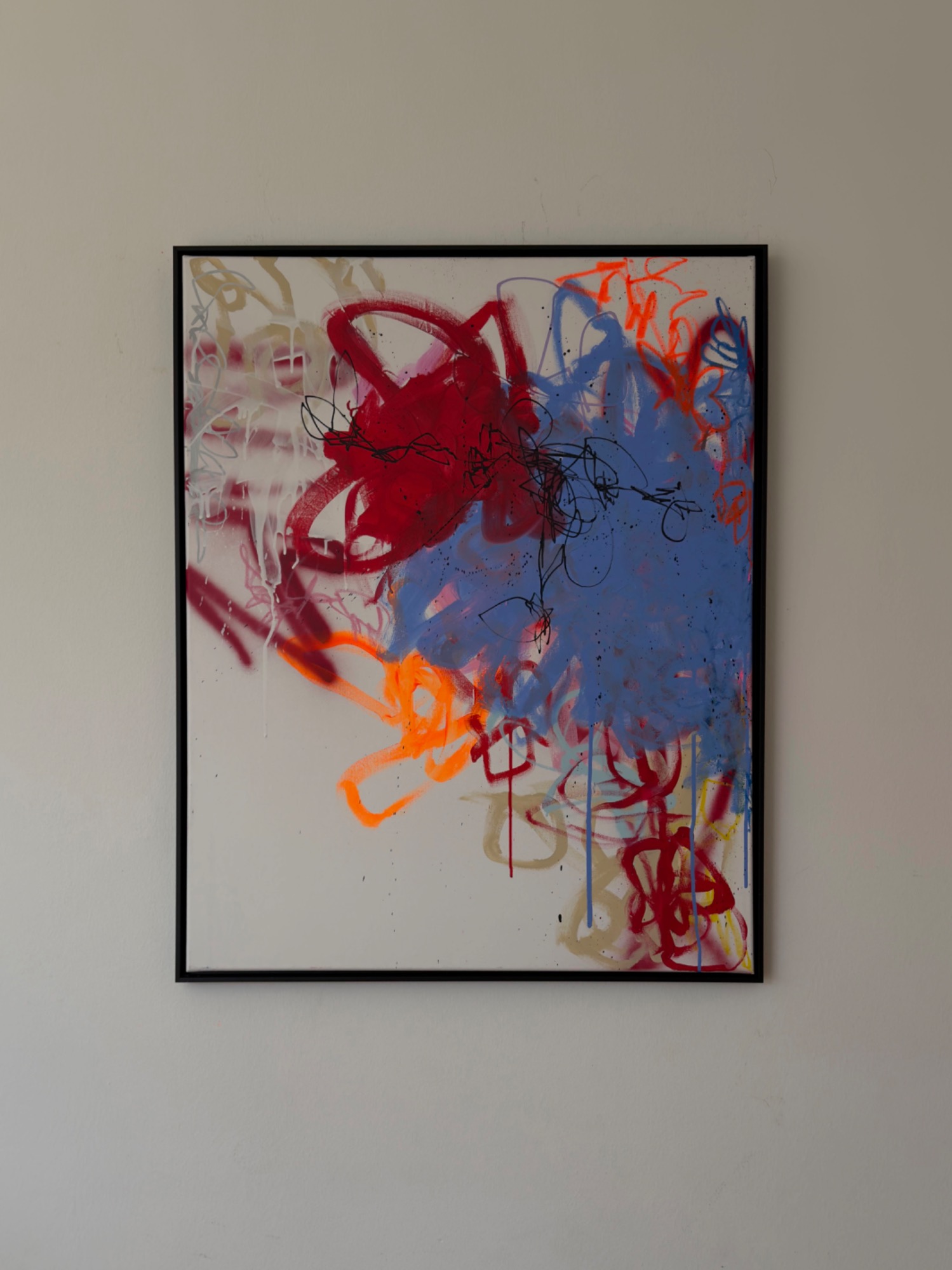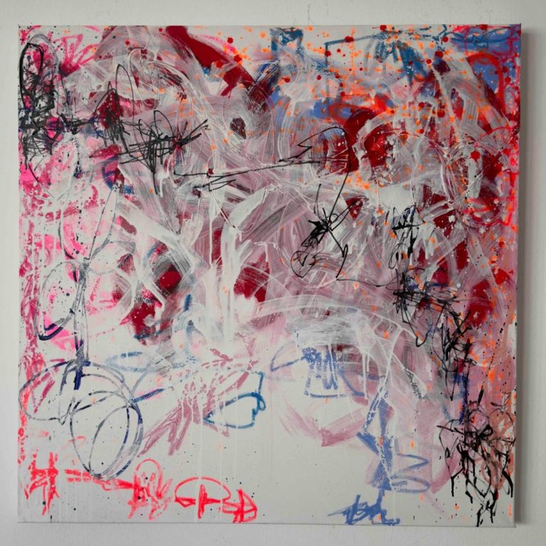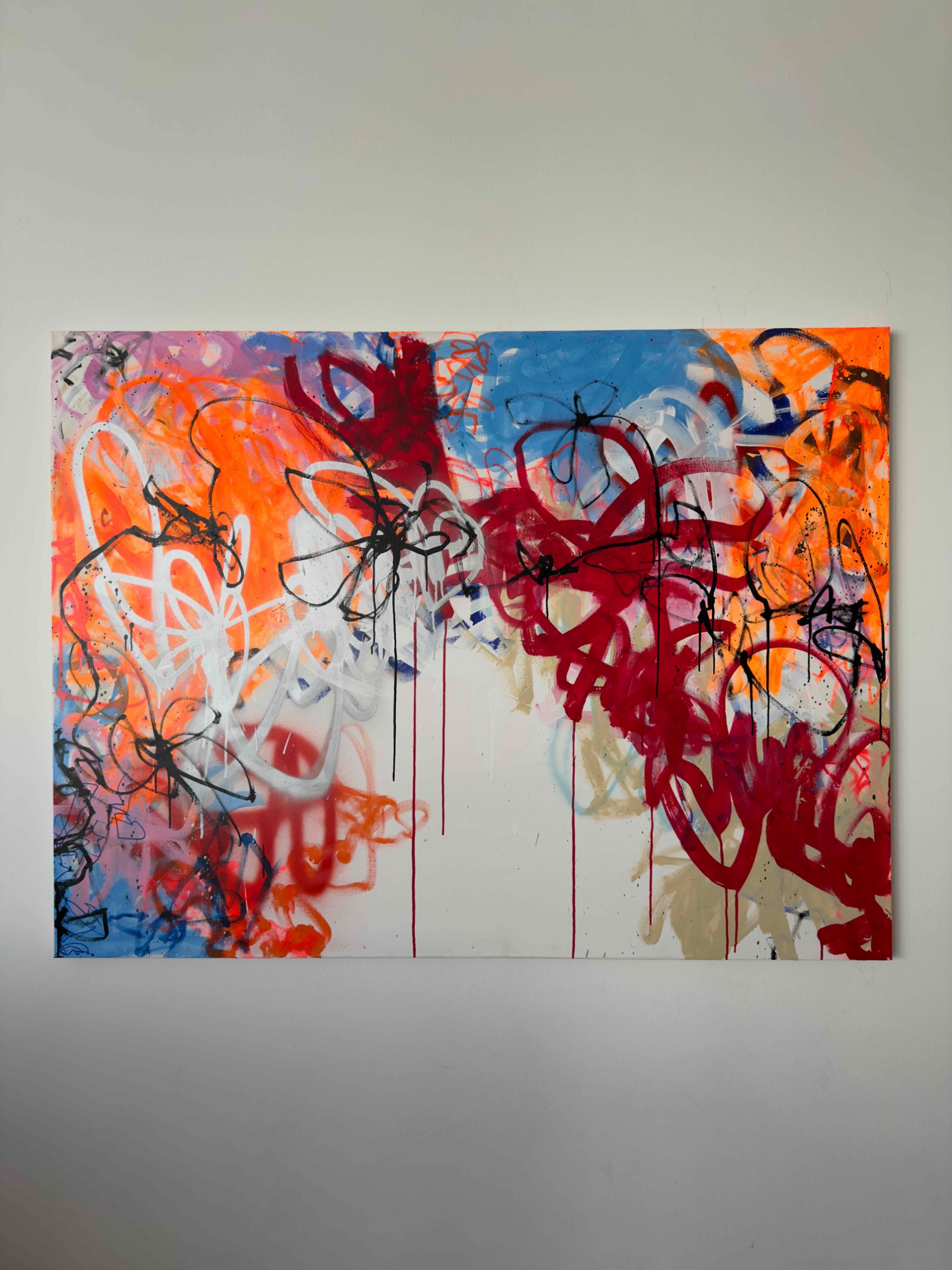 Acryl, Lackmarker, Ölkreide & Spray auf Leinwand
